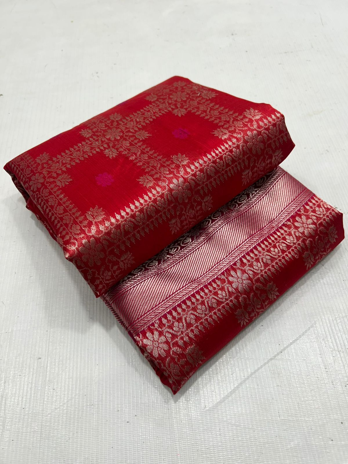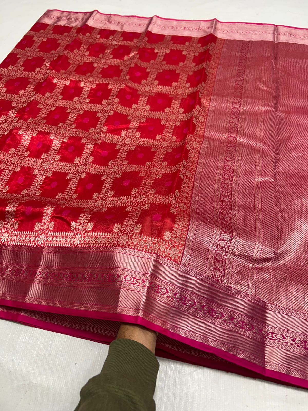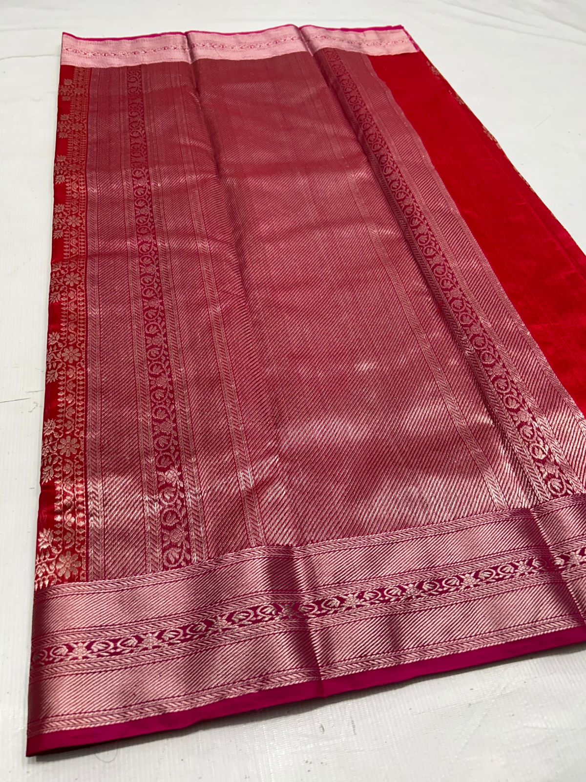 Red Chanderi Handloom Pattu Silk Saree