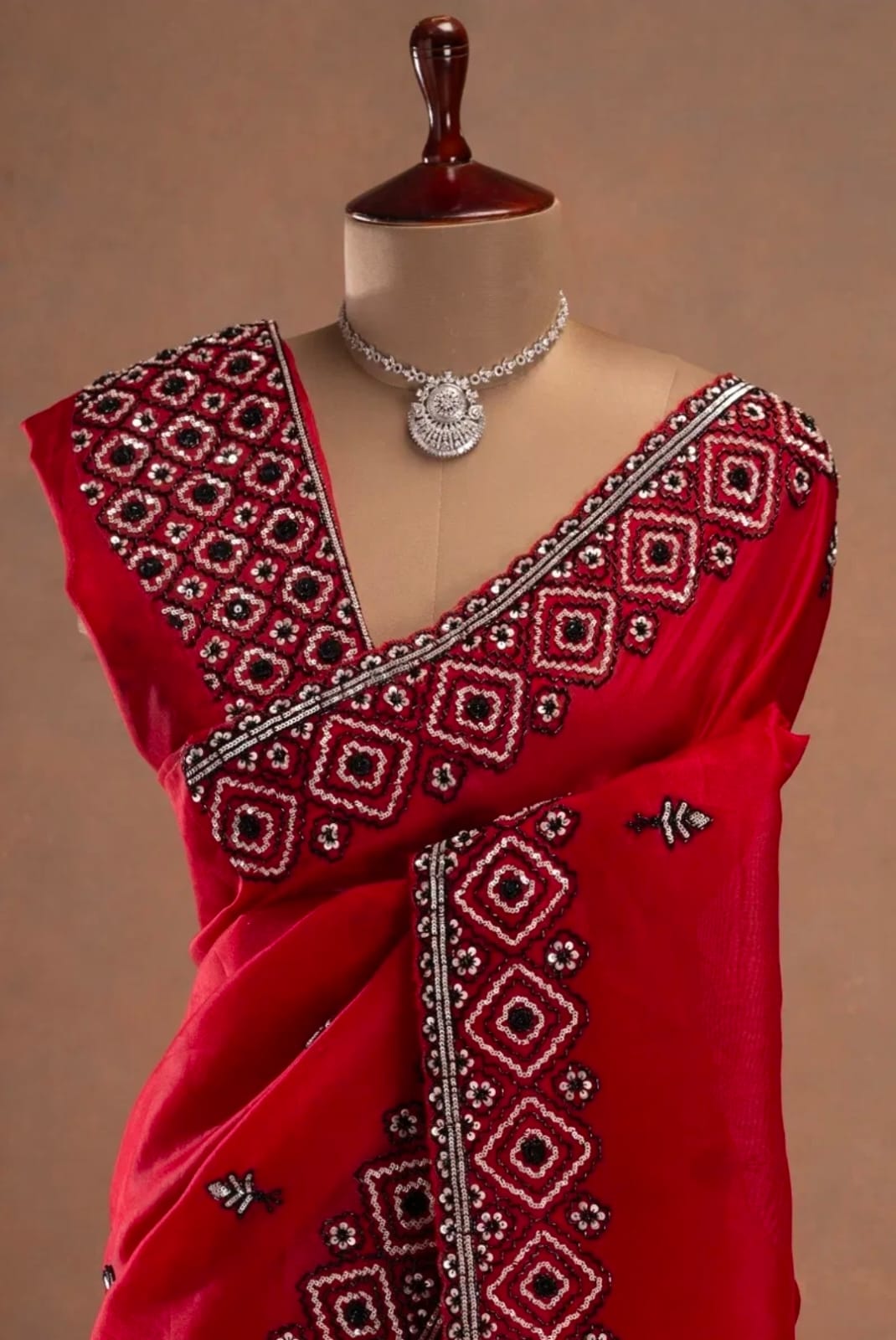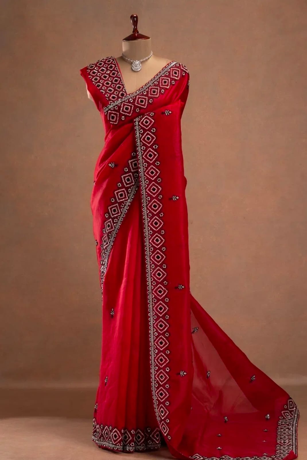 Silk Tatva Hand Embroidered Crafted Tissue Organza Silk Saree, Silk Tatva Hand Embroidered Designer Tissue Organza Silk Saree