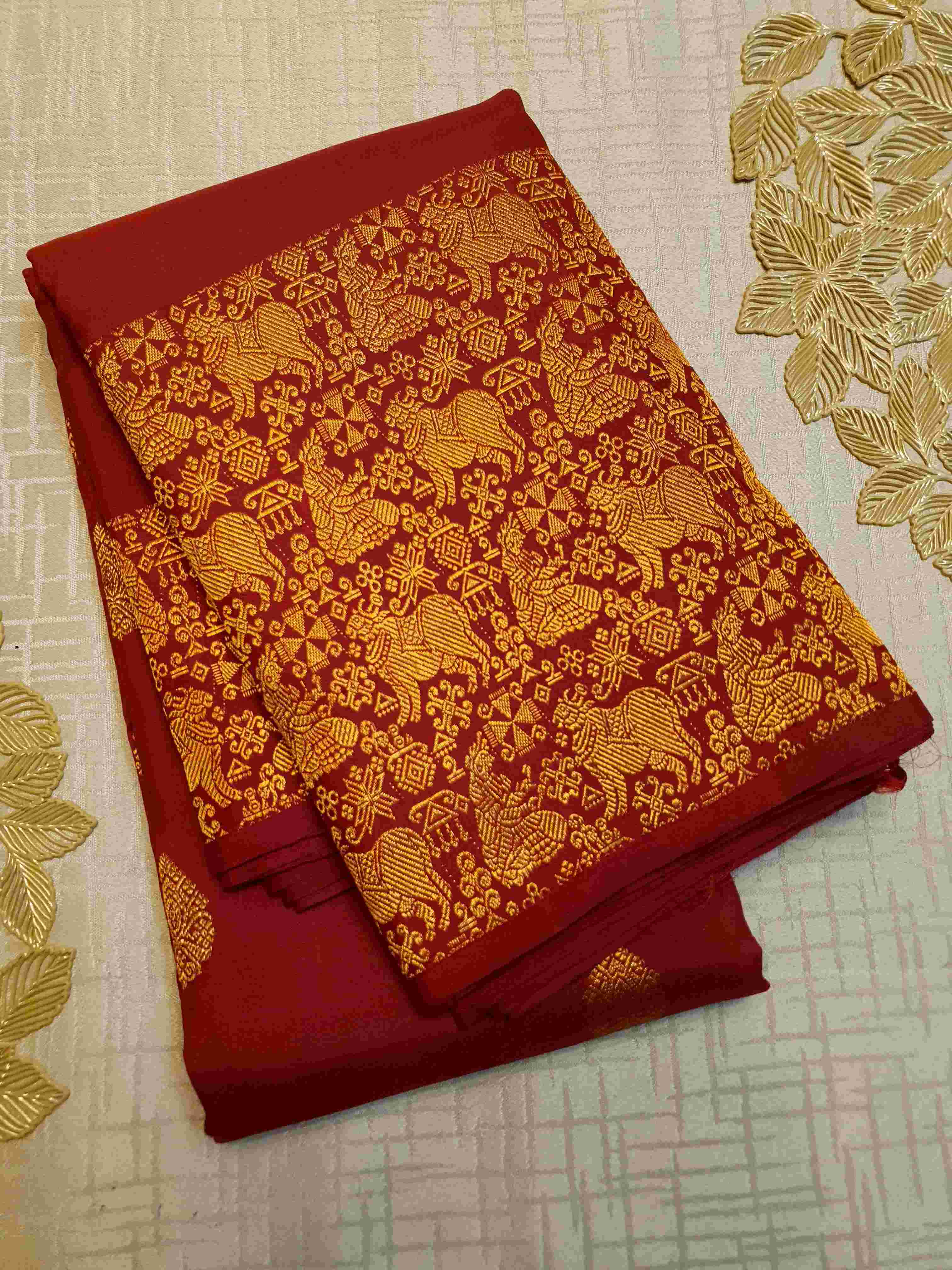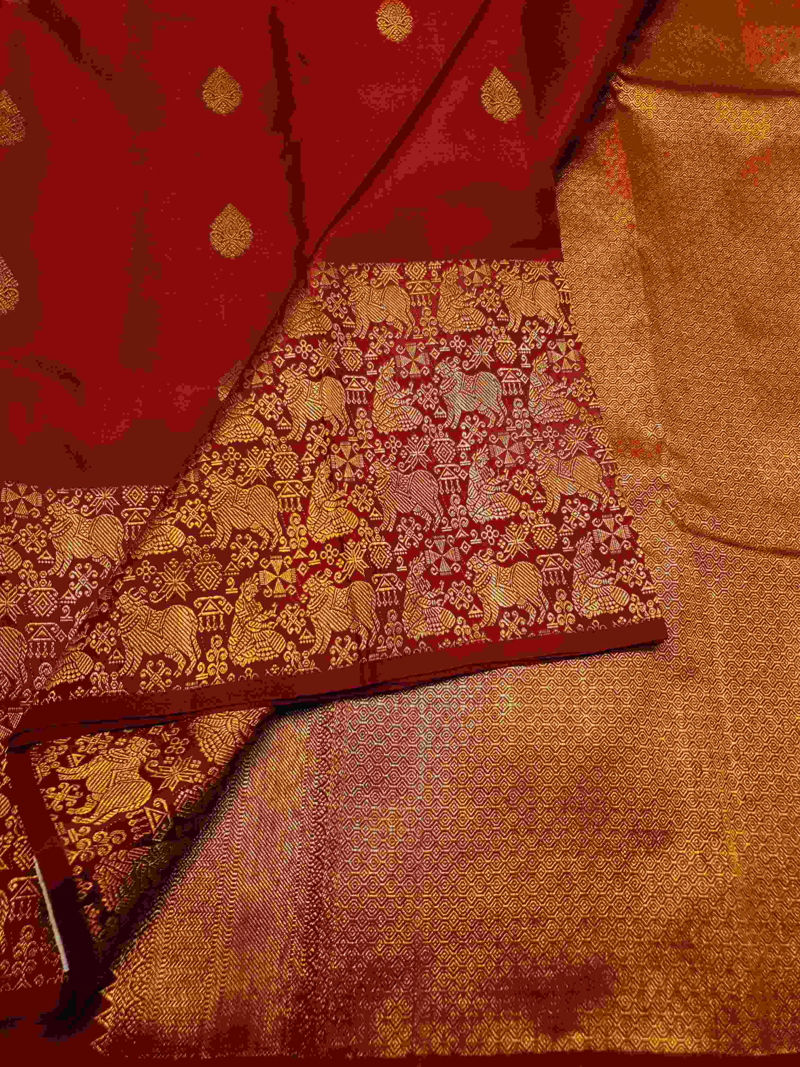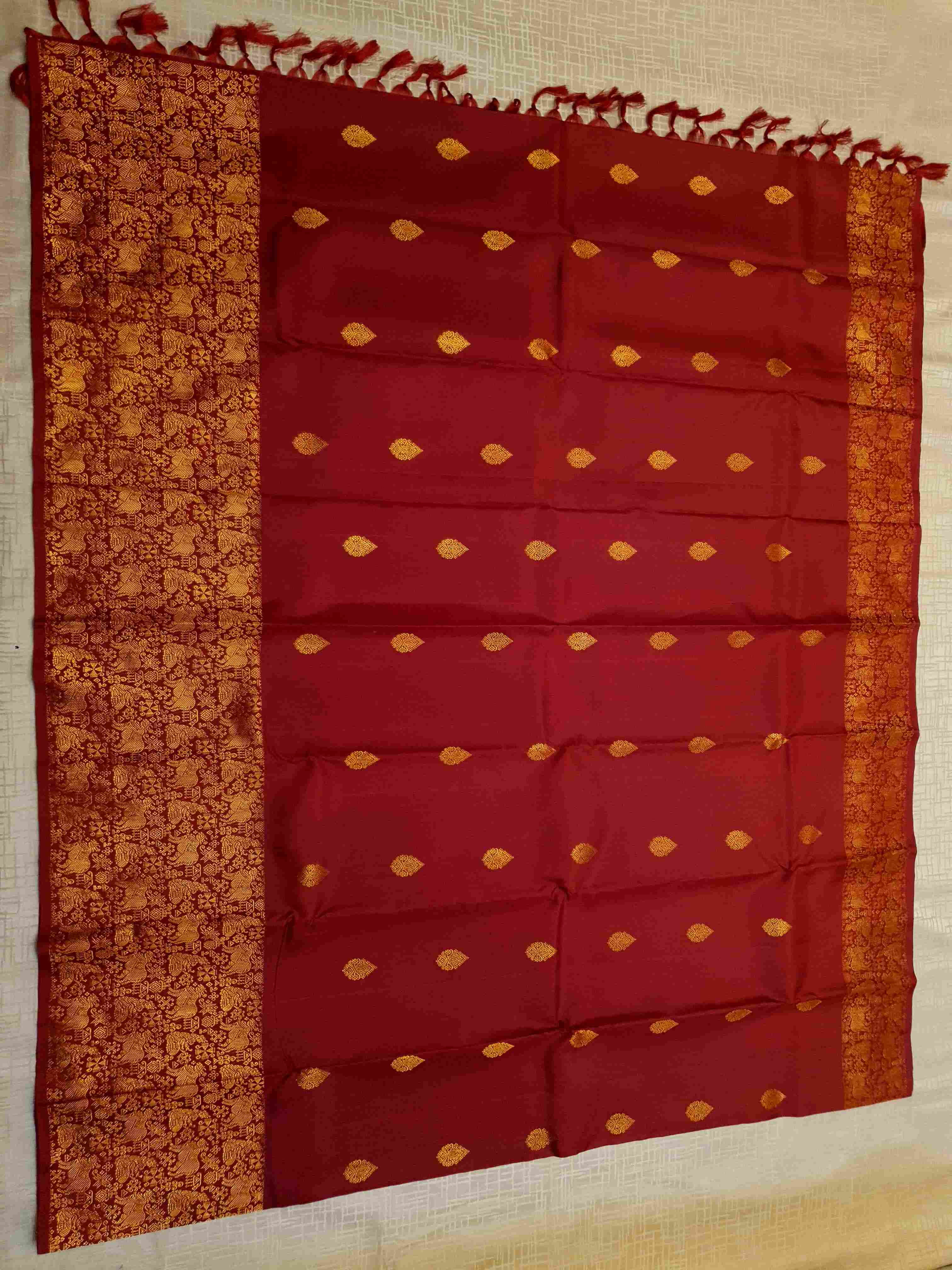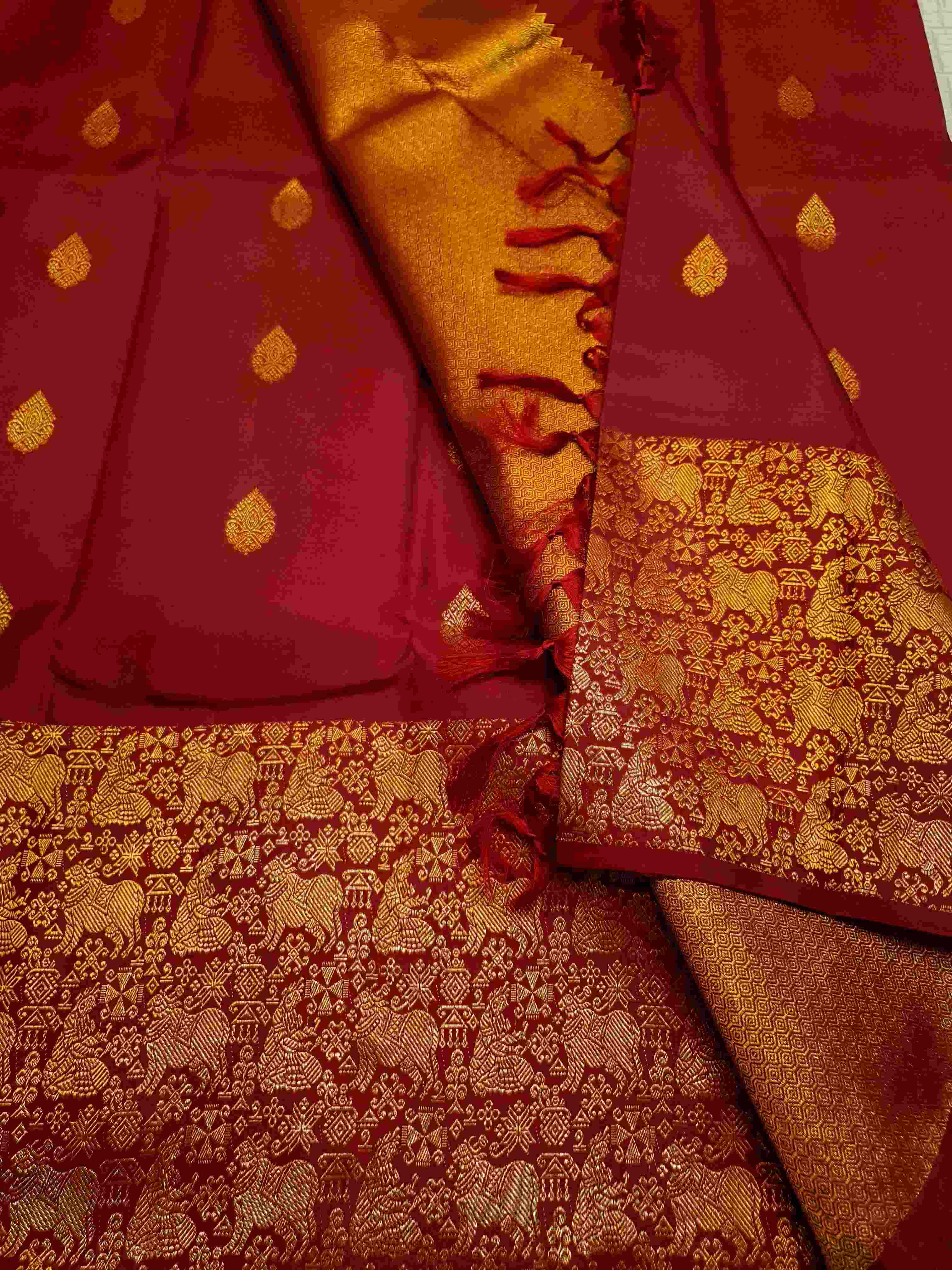 Rustic Red Kanchipuram Handloom 2G Gold Pattu Silk Saree