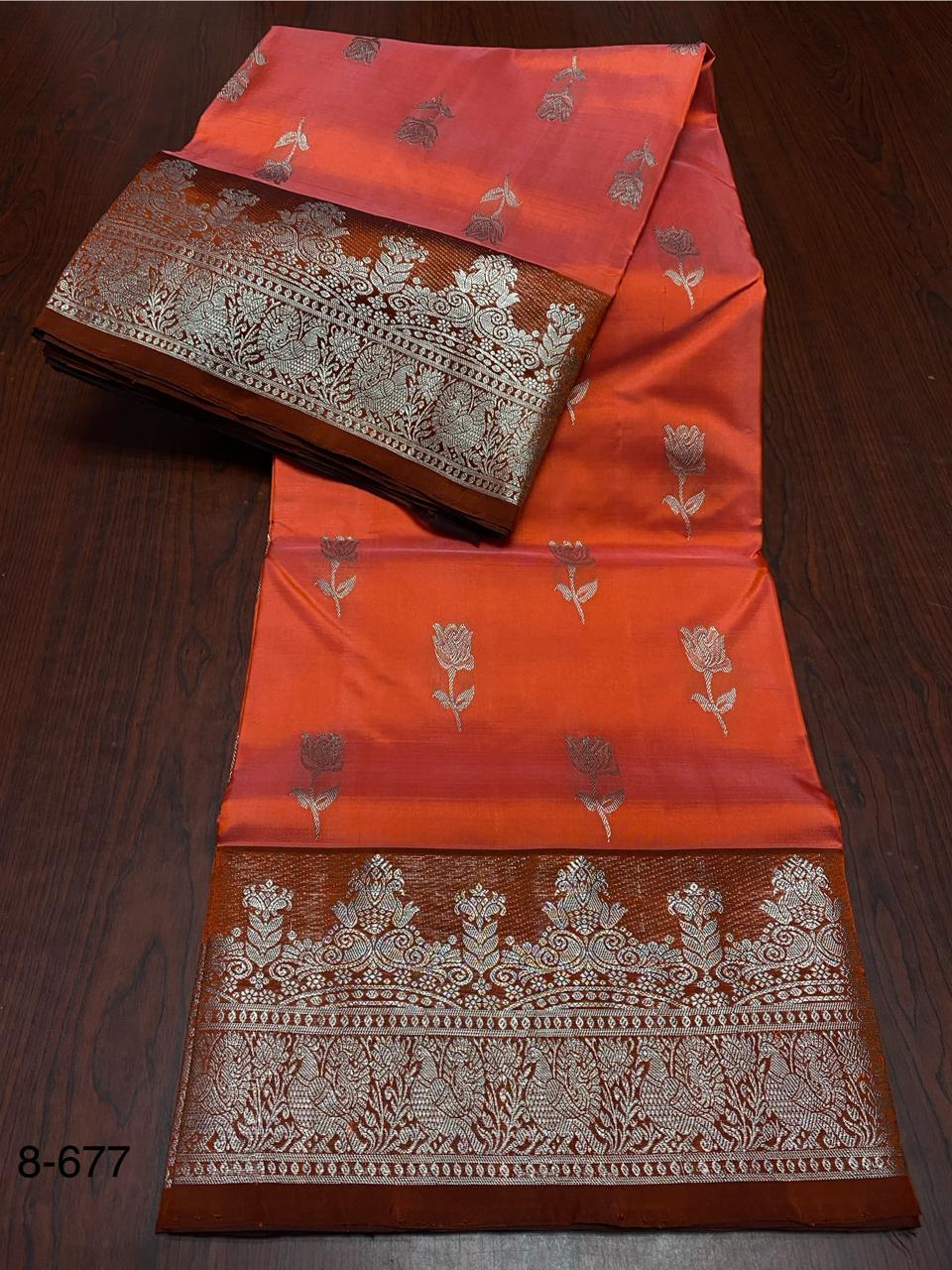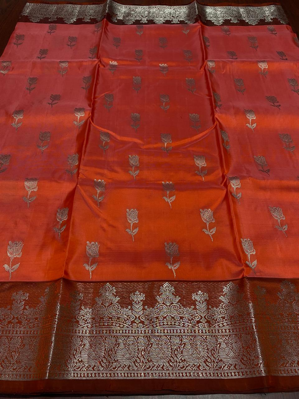 Dual Tone Orange Venkatagiri Handloom Pattu Silk Saree