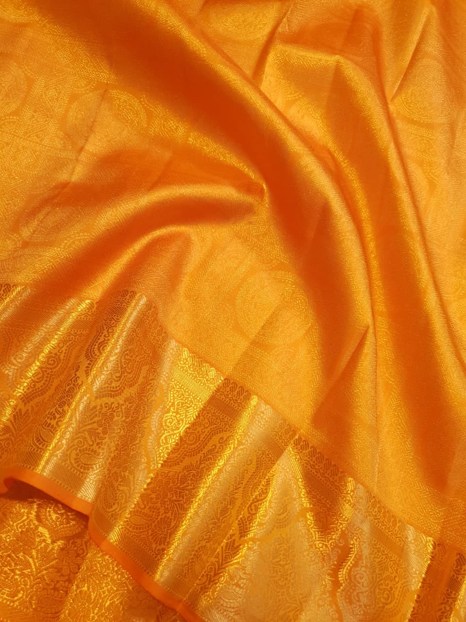 Saffron Kanchipuram Handloom 2G Gold Pattu Silk Saree