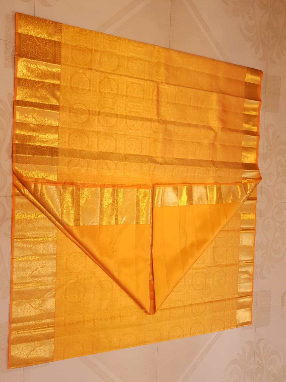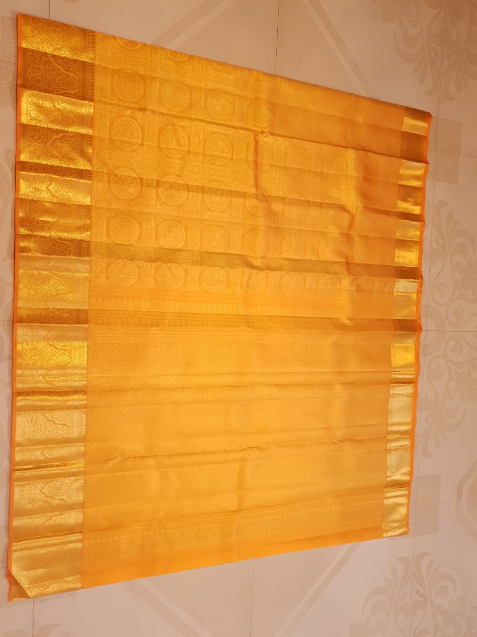 Yellow Gold Kanchipuram Handloom 2G Gold Brocade Pattu Silk Saree