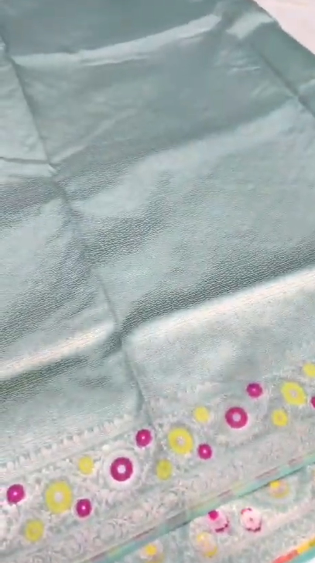 Pastel Green Banarasi Handloom Rangkat Kora Tissue Silk Saree