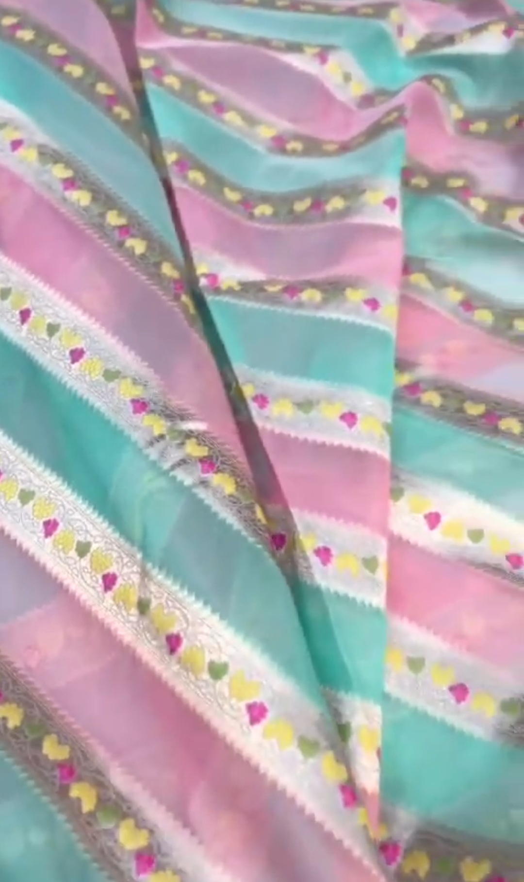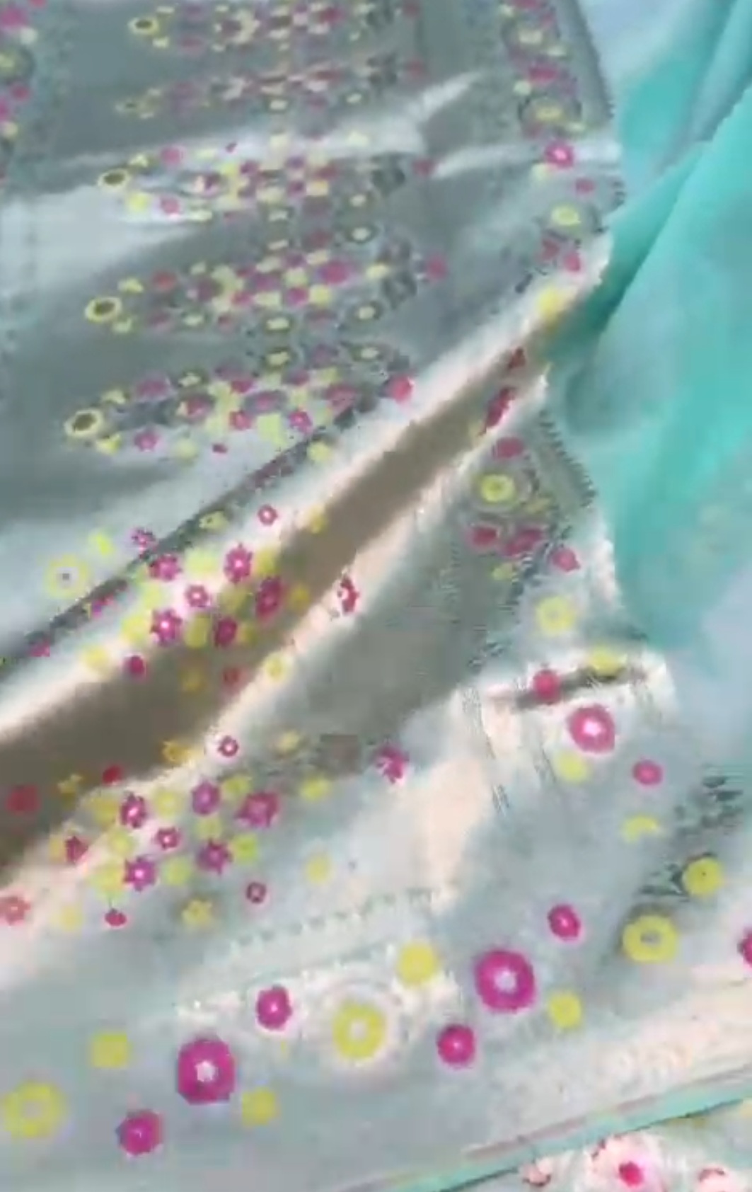 Sea Green Banarasi Handloom Kora Organza Silk Meenakari Saree