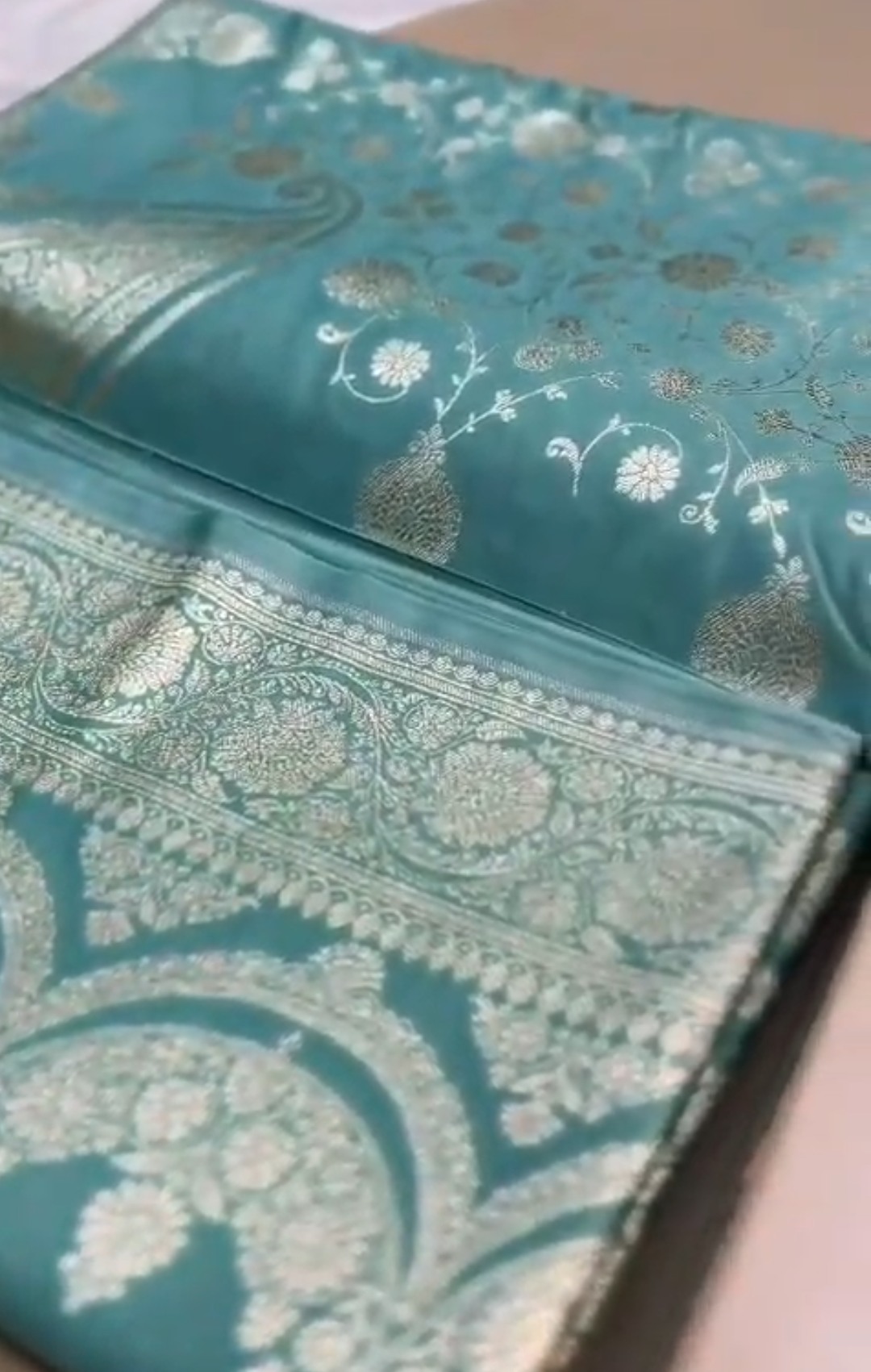 Sea Green Banarasi Mashru Soft Silk Jangla Saree