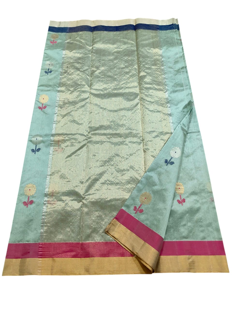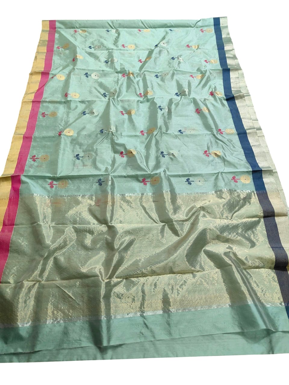 Sea Green Chanderi Handloom Pattu Silk Meenakari Saree
