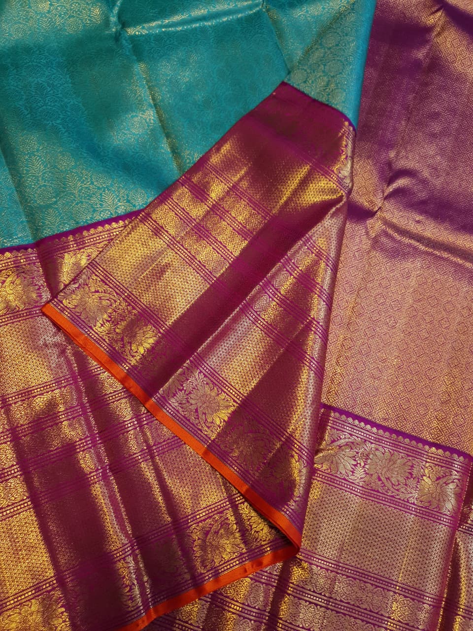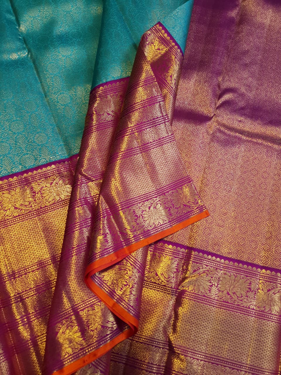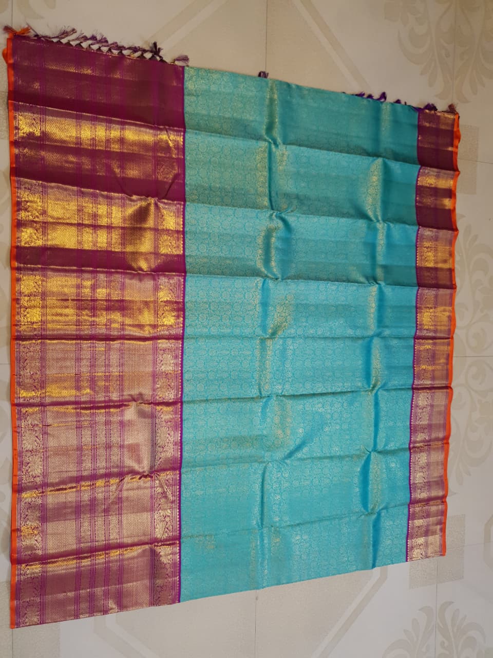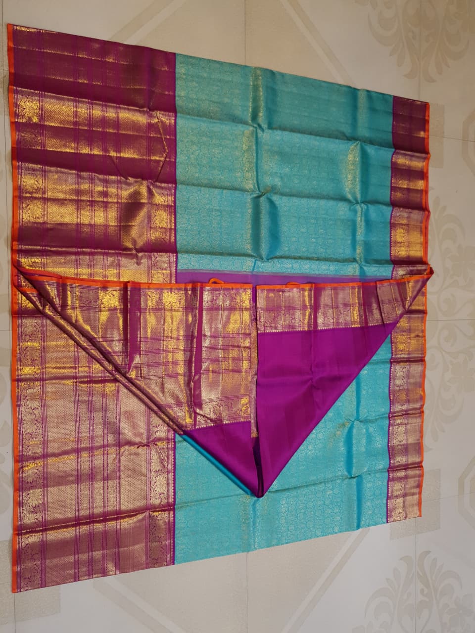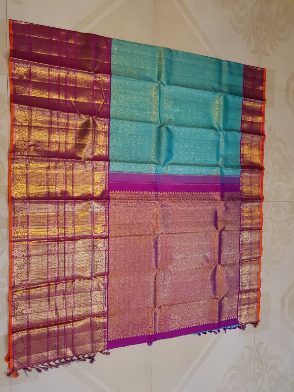 Sea Green Kanchipuram Handloom 2G Gold Pattu Silk Saree