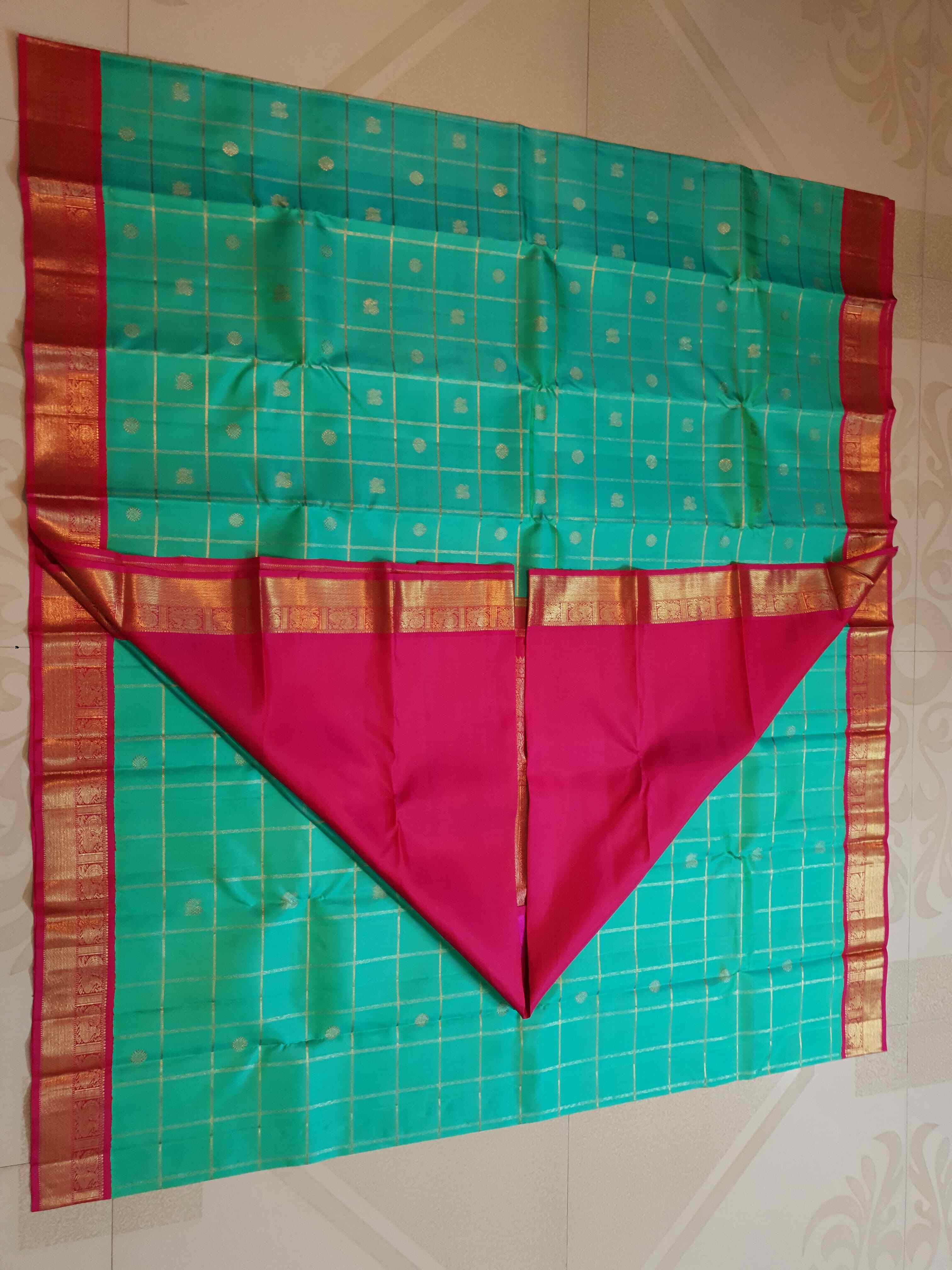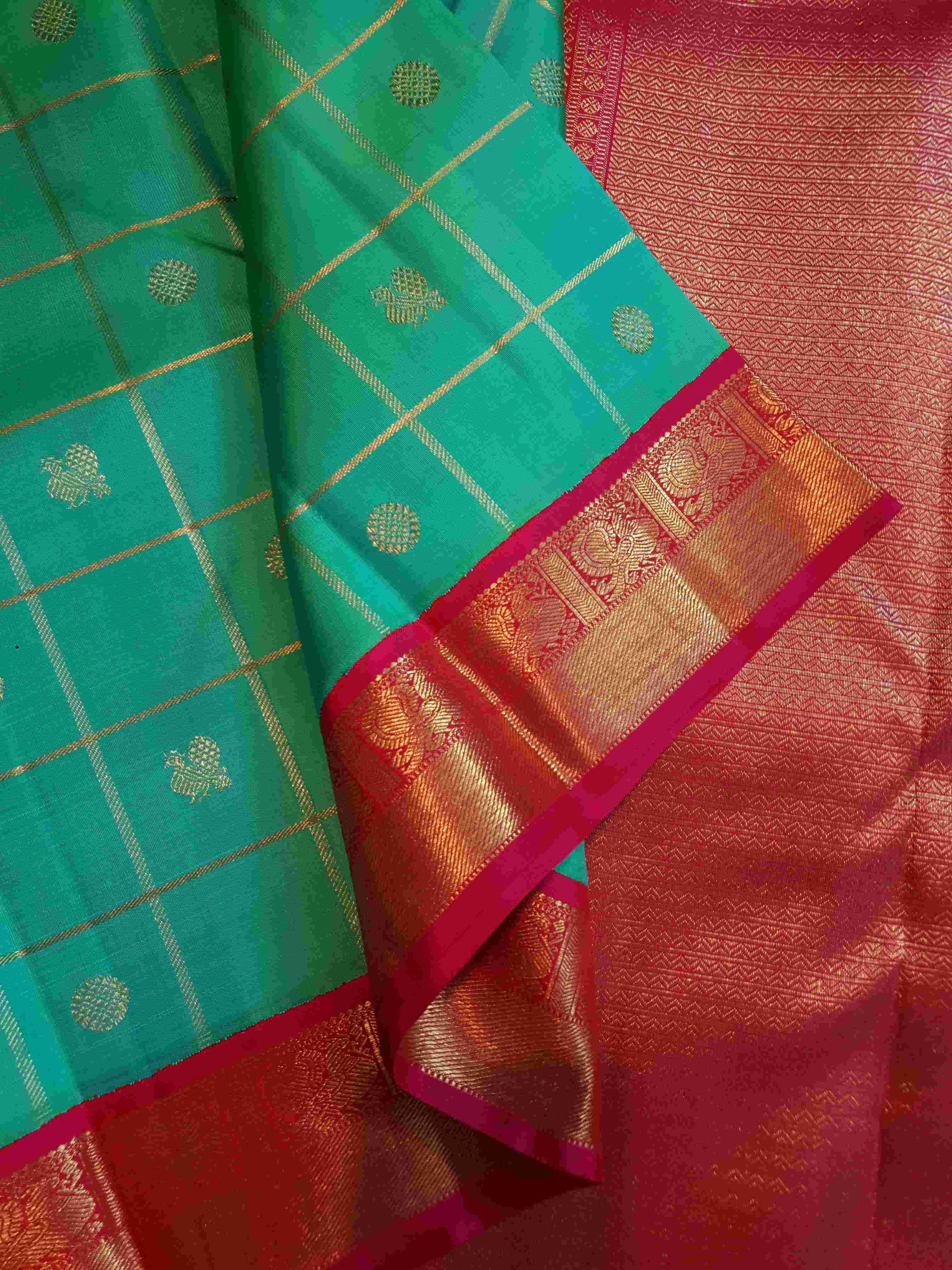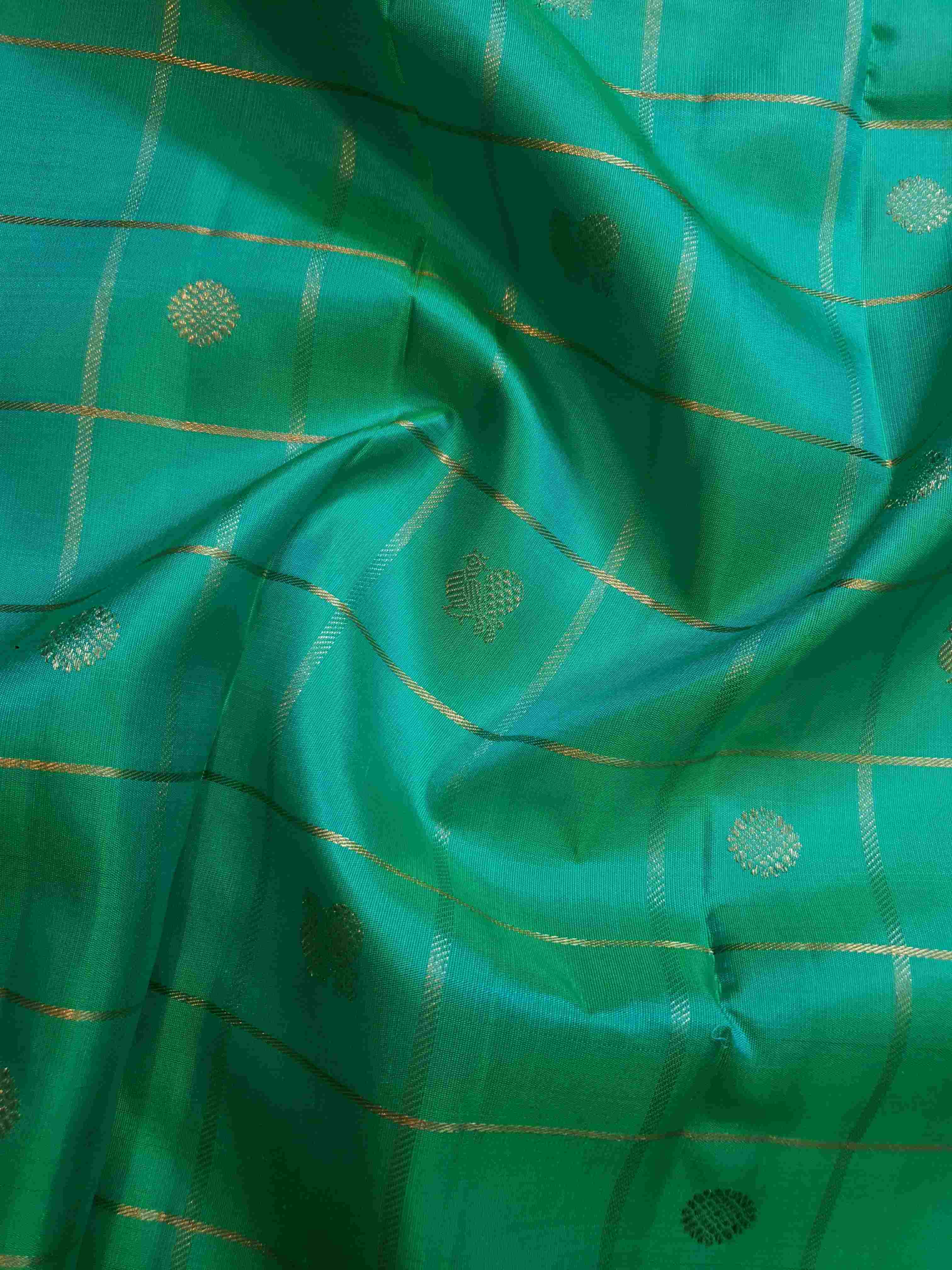 Sea Green Kanchipuram Handloom 4G Pure Gold Pattu Silk Saree