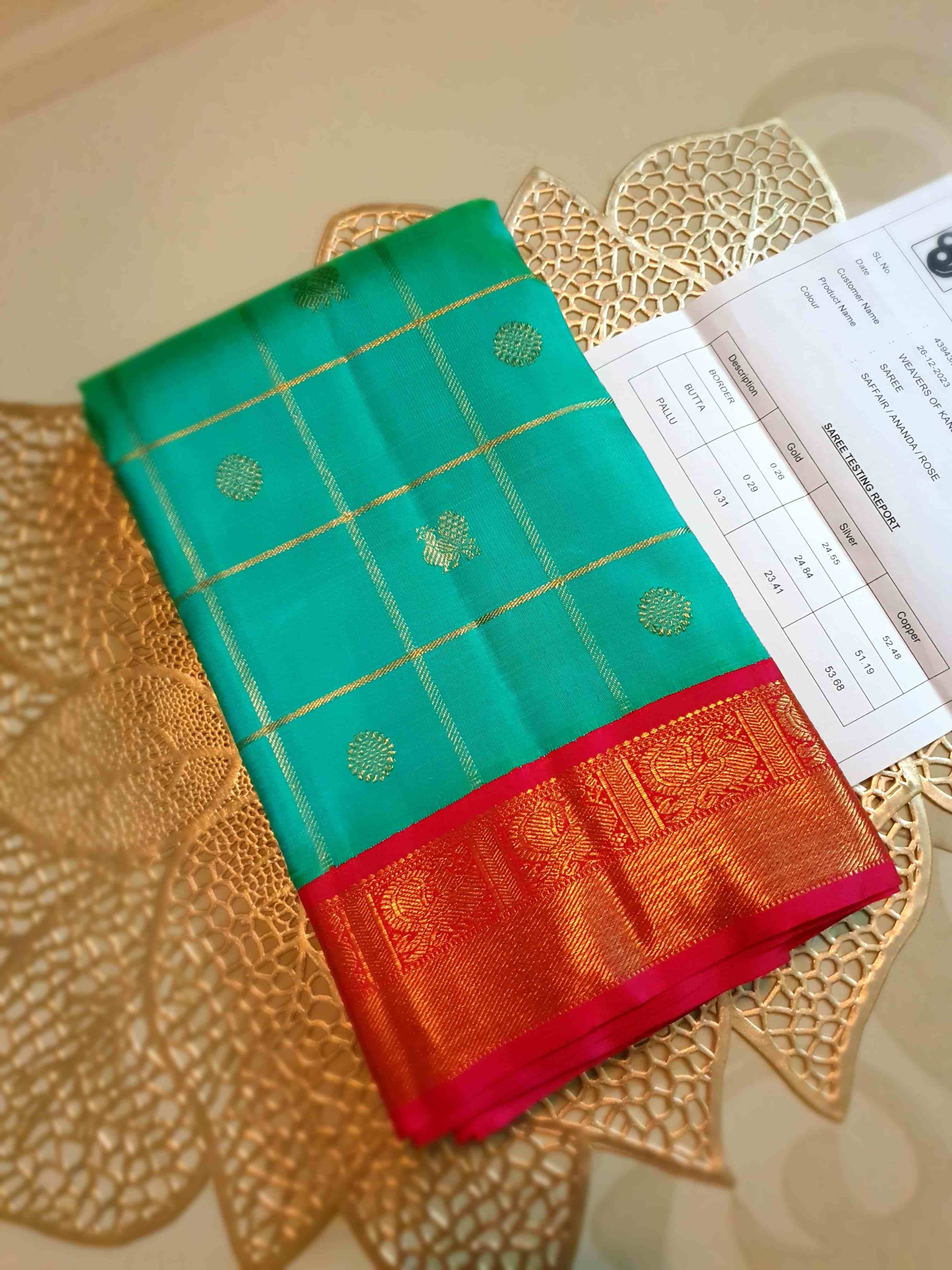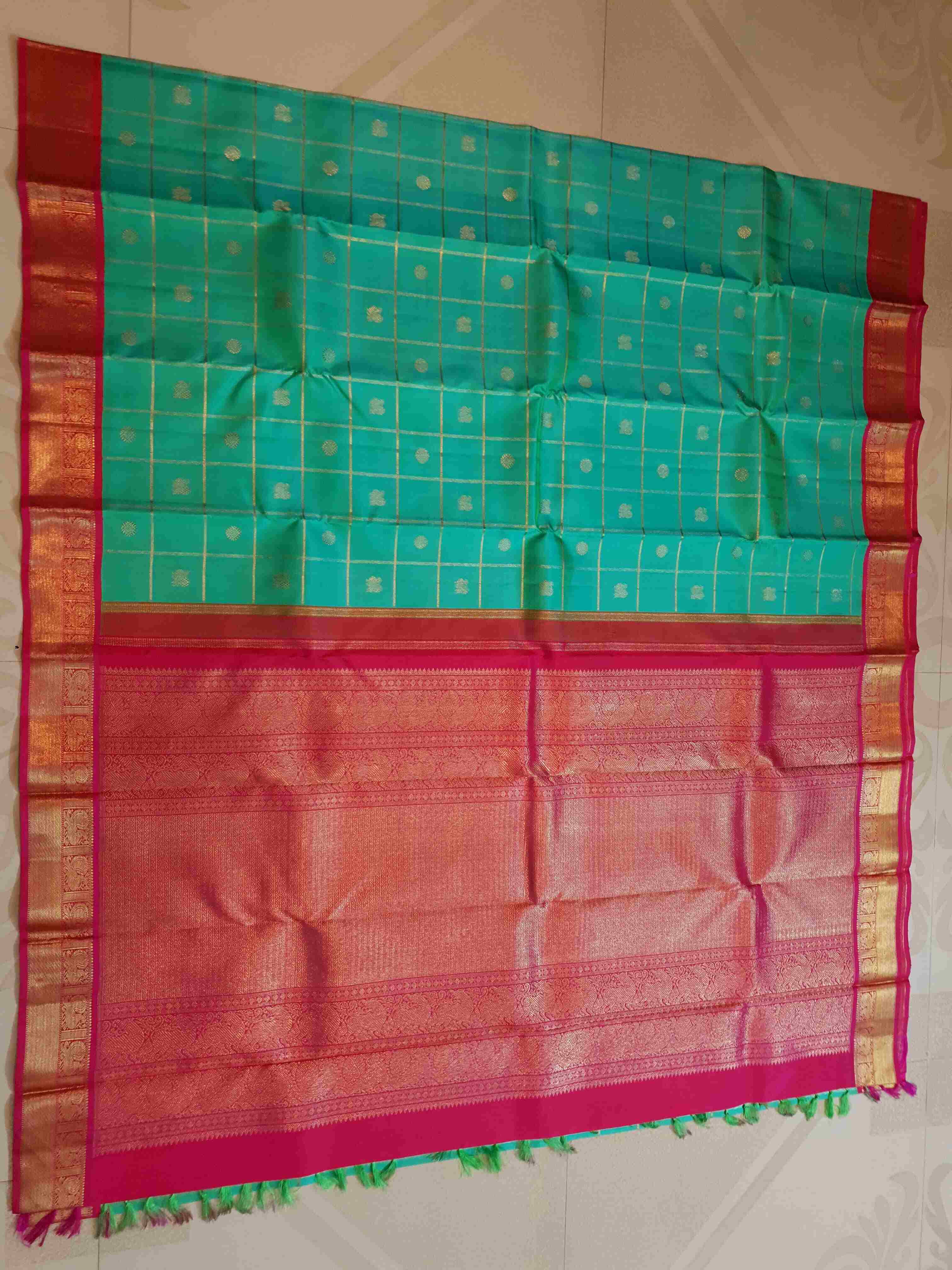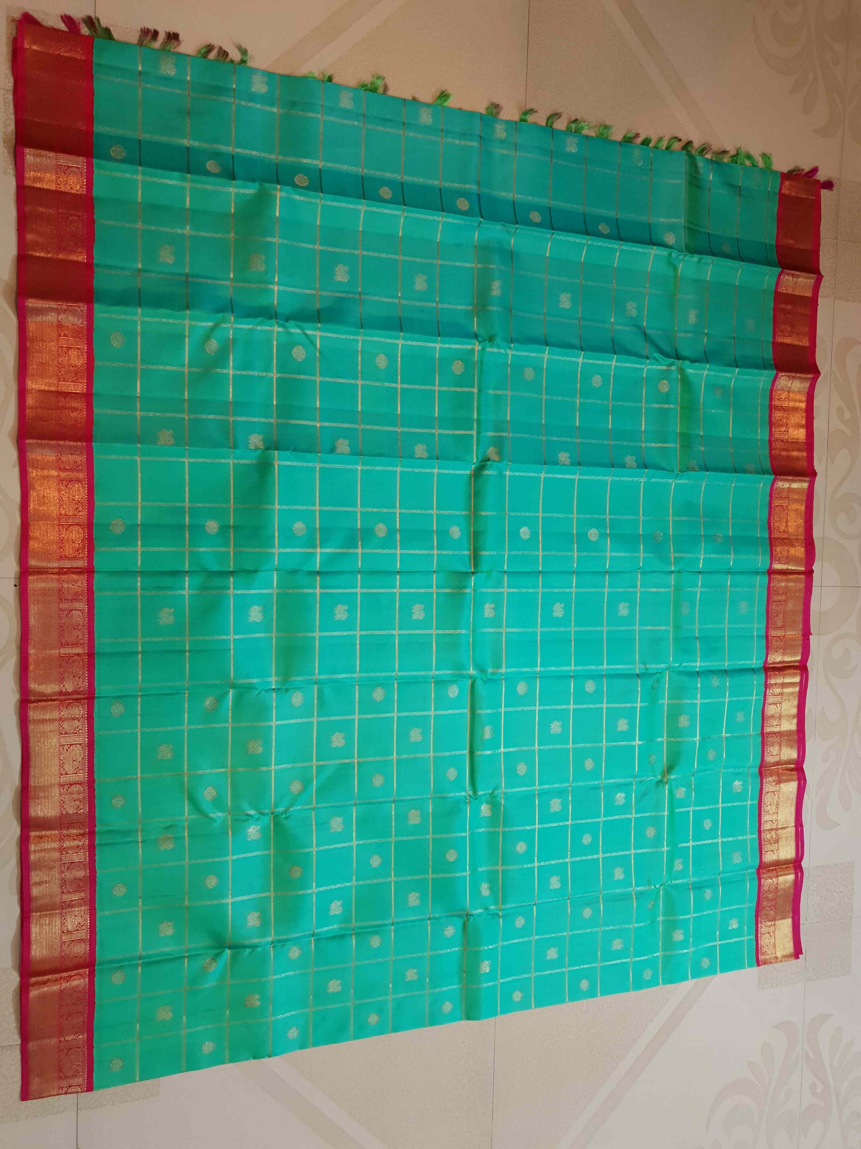 Sea Green Kanchipuram Handloom 4G Pure Gold Pattu Silk Saree