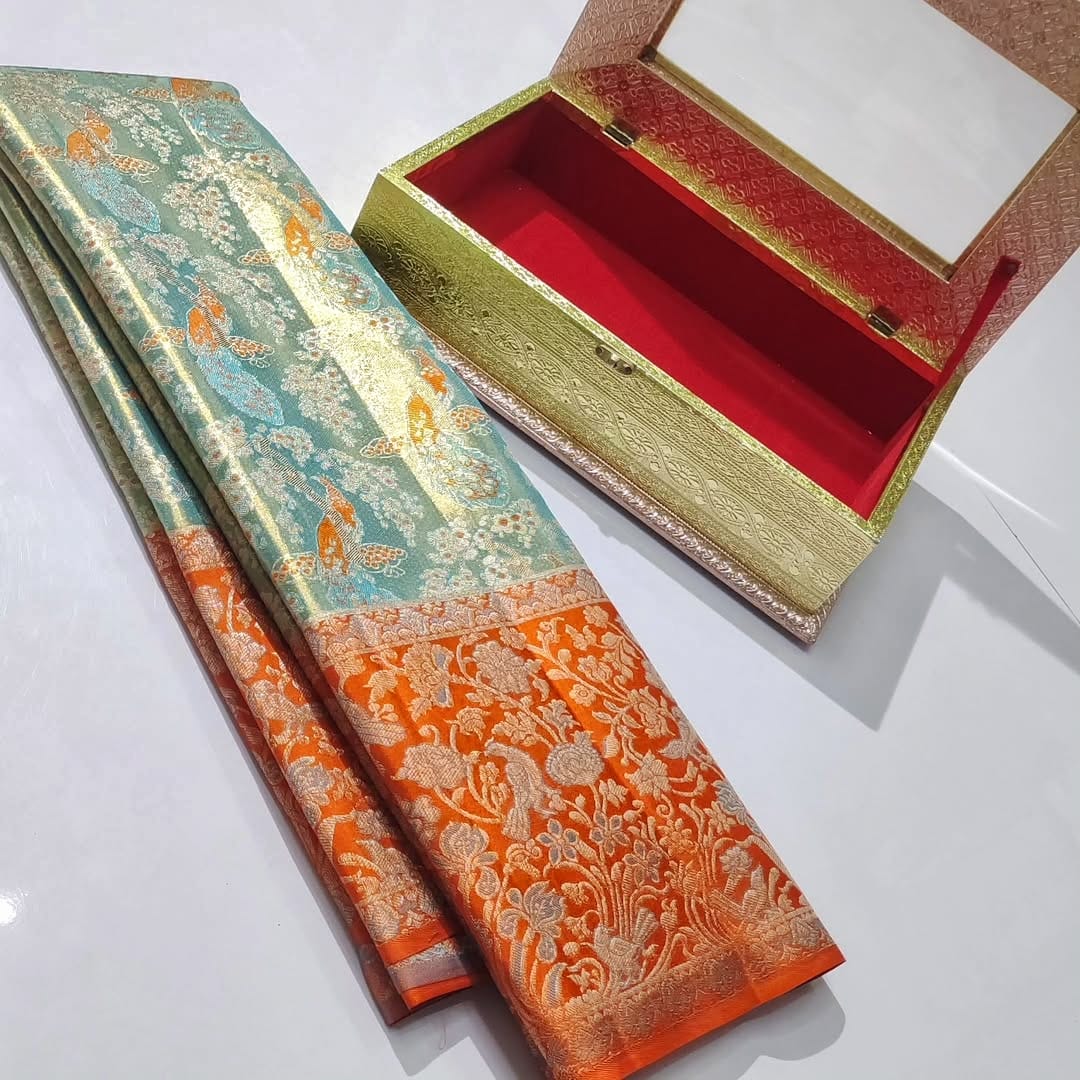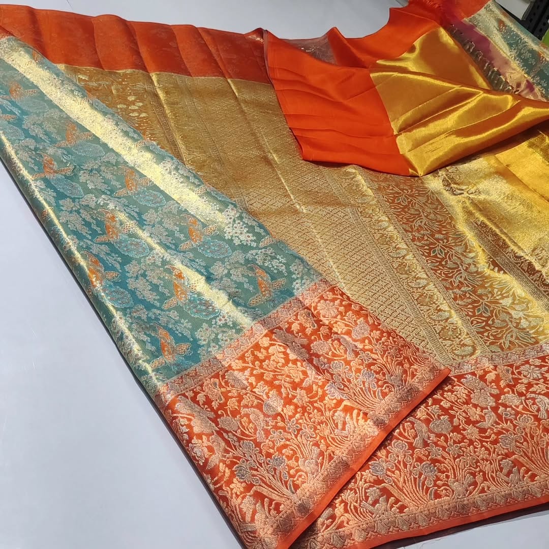 Orange Kanchipuram Handloom Tissue Brocade 1G Gold Bridal Saree
