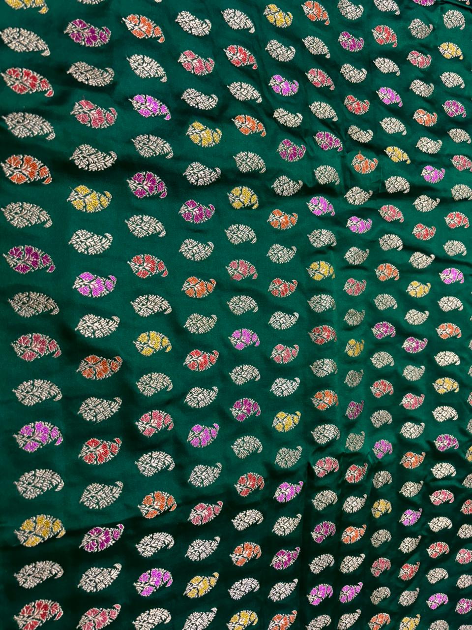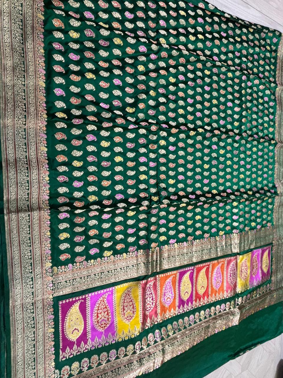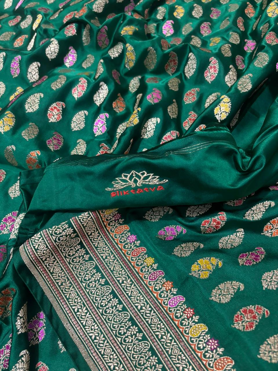 Silk Tatva 'Boteh' Dark Green Banarasi Handloom Gold Zari Katan Silk Saree