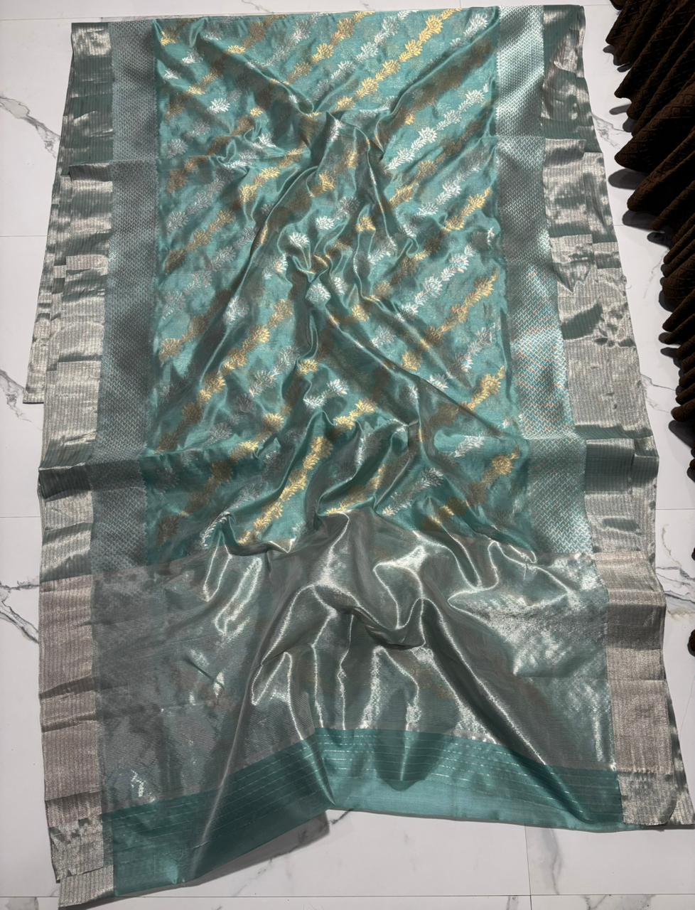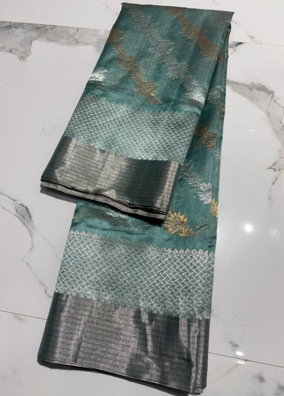 Sea Green Chanderi Handloom Pattu Silk Meenakari Saree