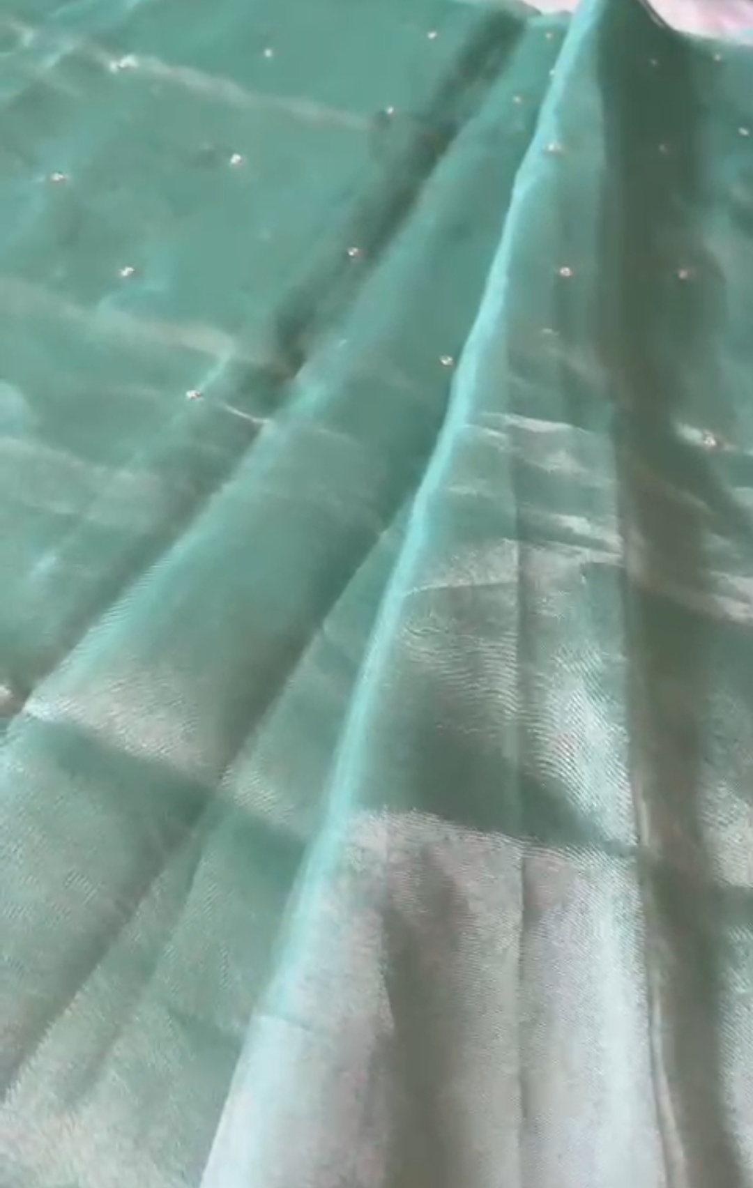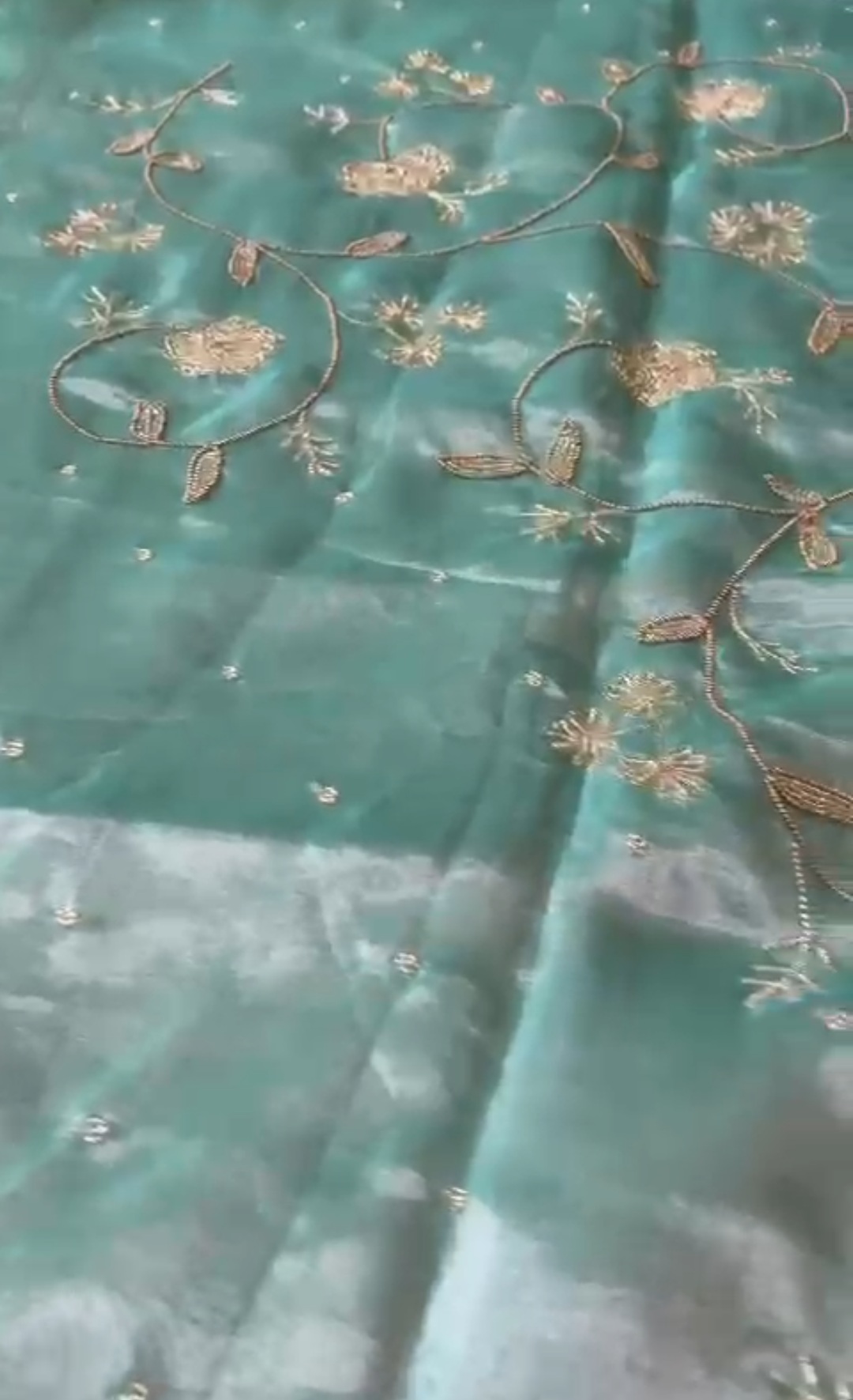 Sea Green Banarasi Handloom Tissue Silk Paithani Embroidery Saree