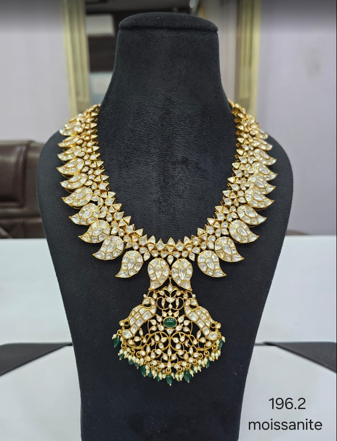 Traditional Gold Plated Moissanite Polki Traditional Mango Necklace