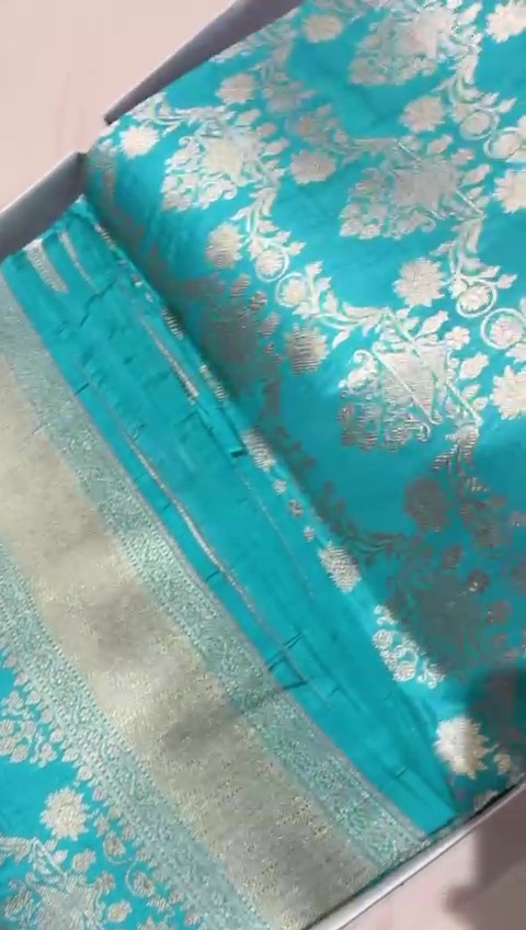 Turquiose Banarasi Handloom Katan Silk Sona Rupa Saree