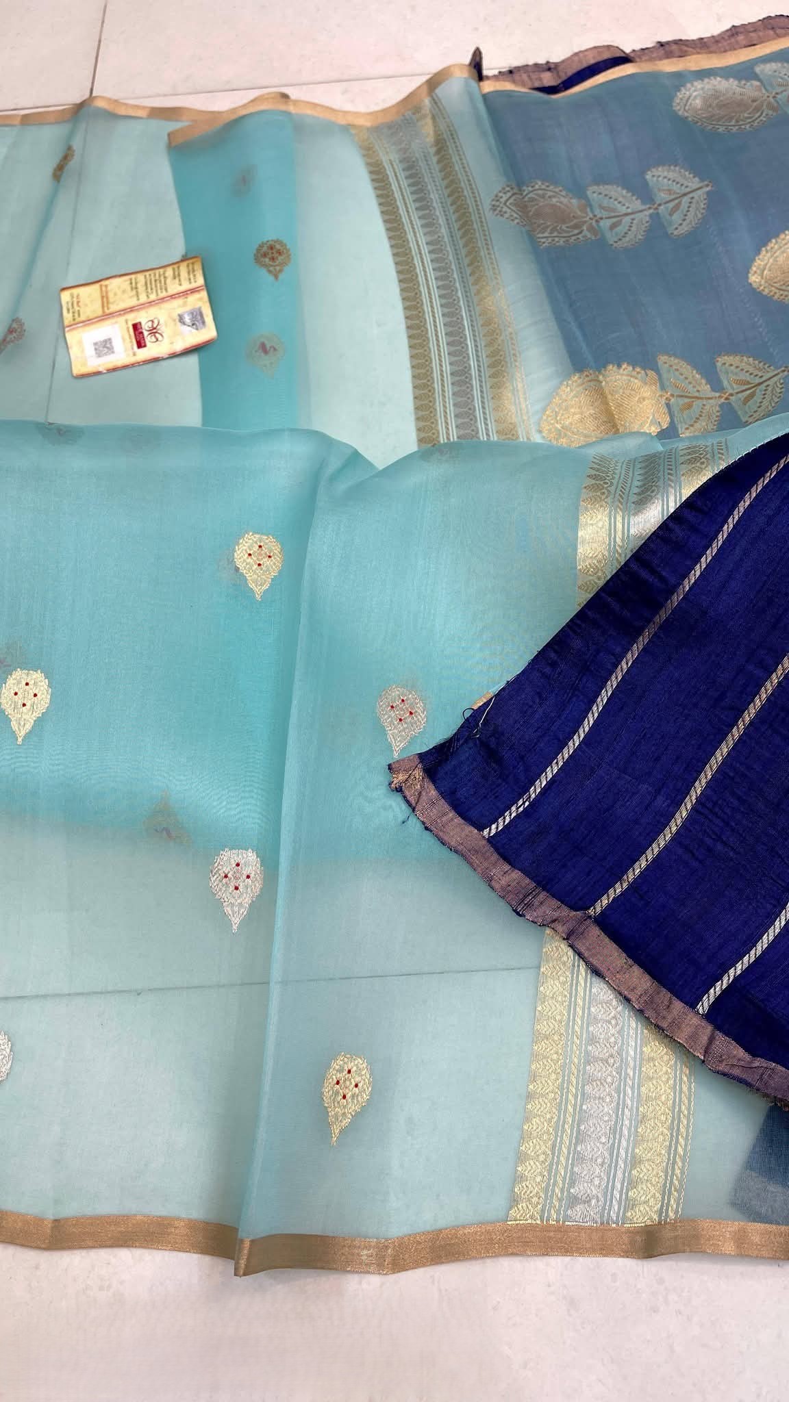 Turquoise Banarasi Handloom Kora Organza Silk Saree