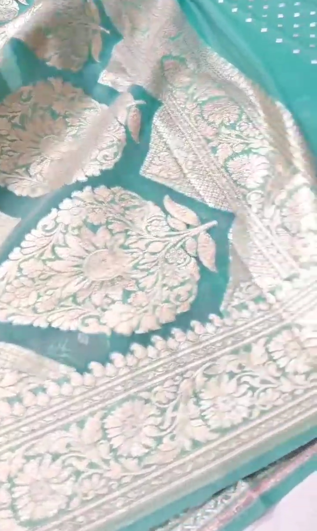 Turquoise Banarasi Handloom Rangkat Kora Tissue Silk Saree