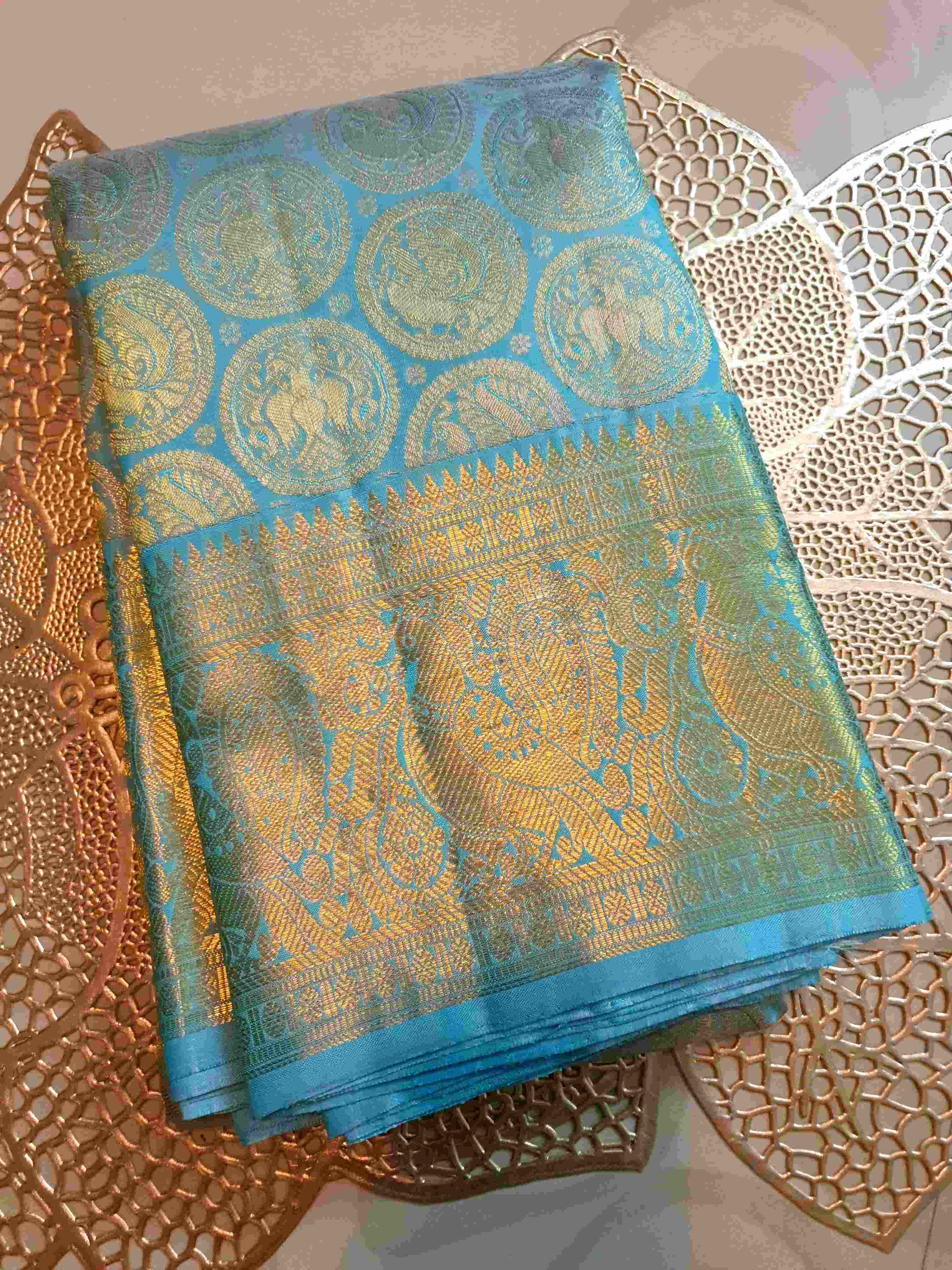 Turquoise Kanchipuram Handloom 2G Gold Pattu Silk Saree