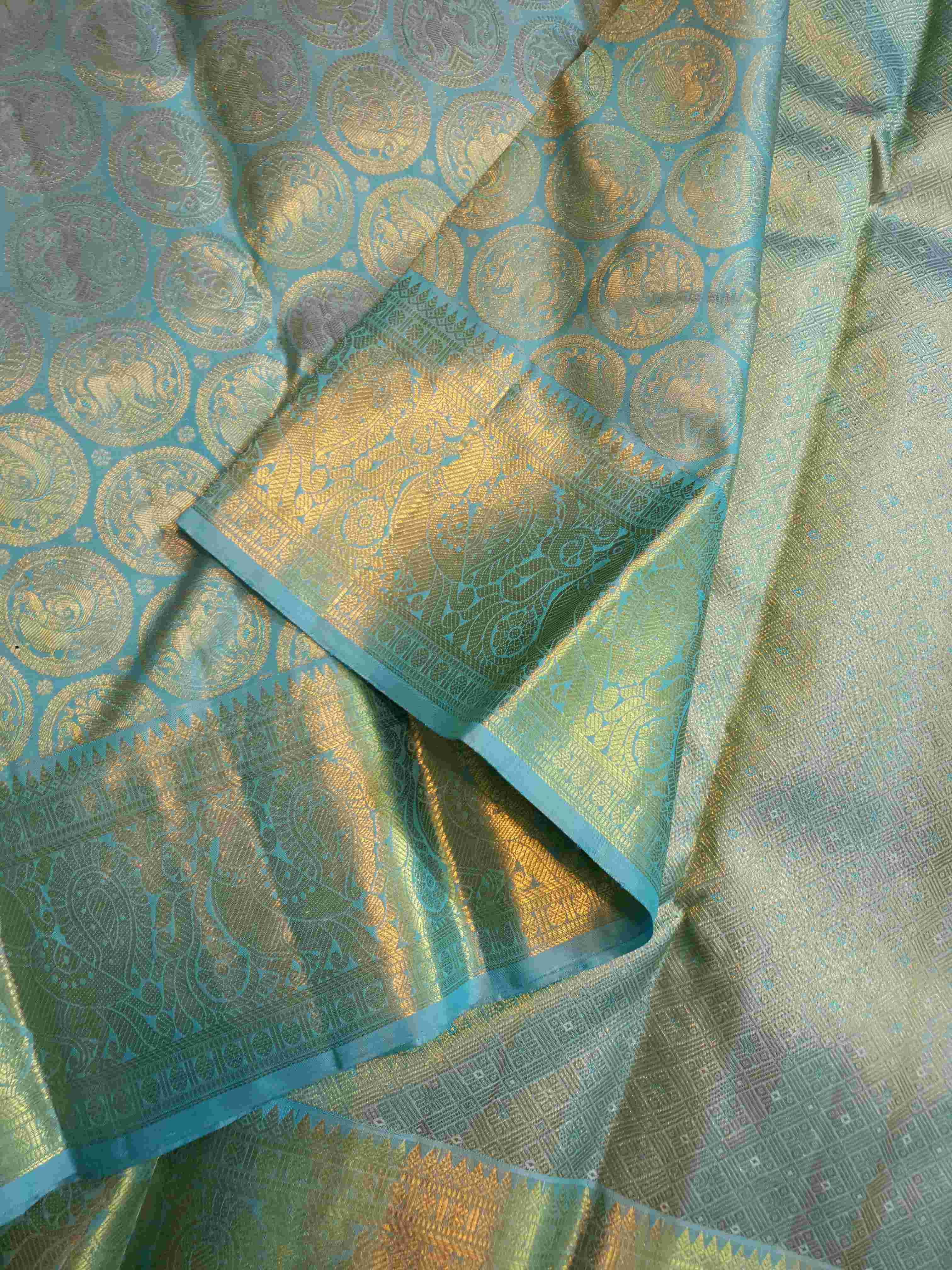 Powder Blue Kanchipuram Handloom 2G Gold Pattu Silk Saree