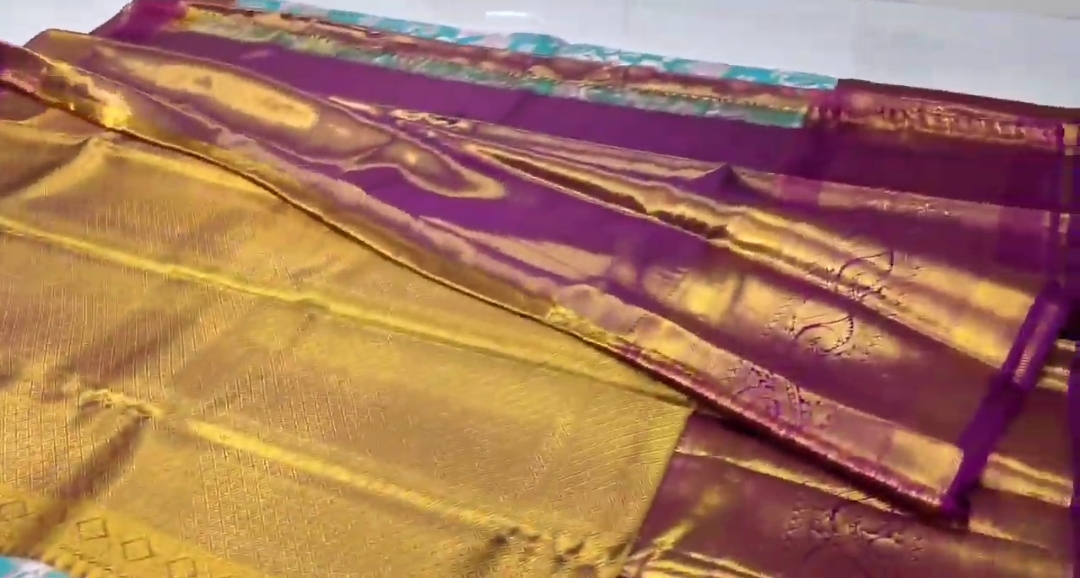 Dual Tone Plum Kanchipuram Handloom Meenakari Tissue Silk Saree