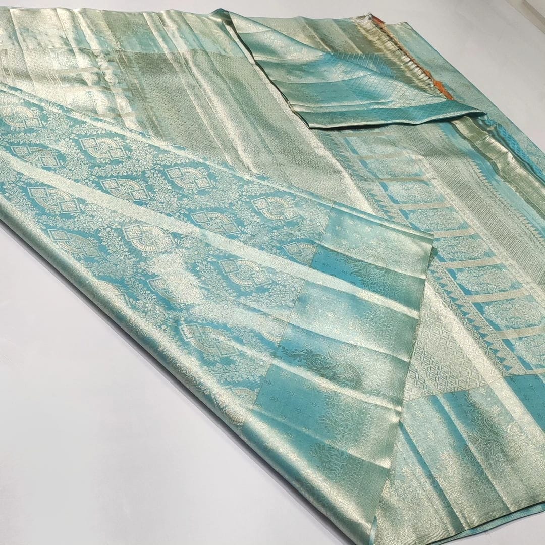 Turquoise Kanchipuram Handloom Tissue Brocade Silk Saree