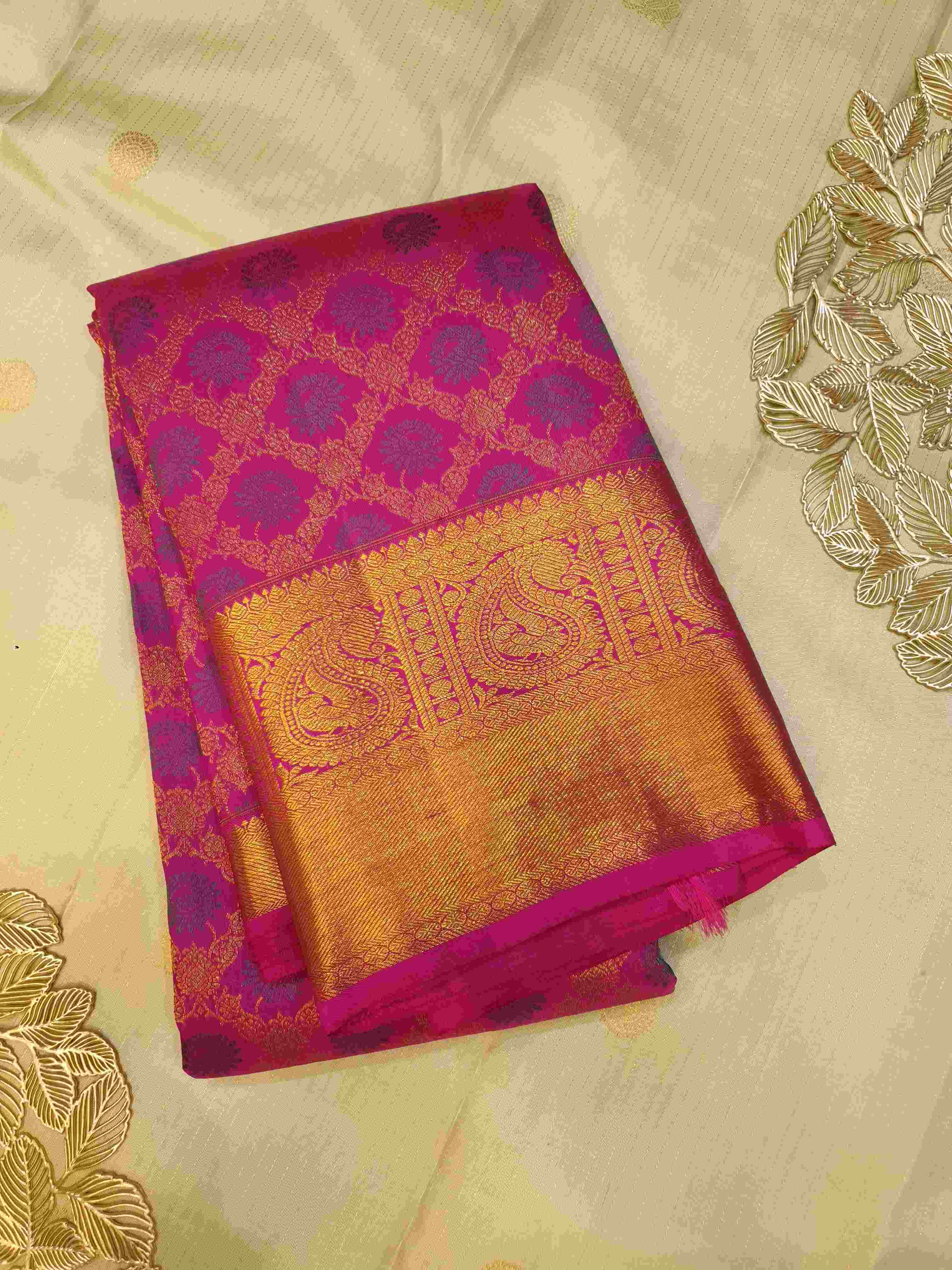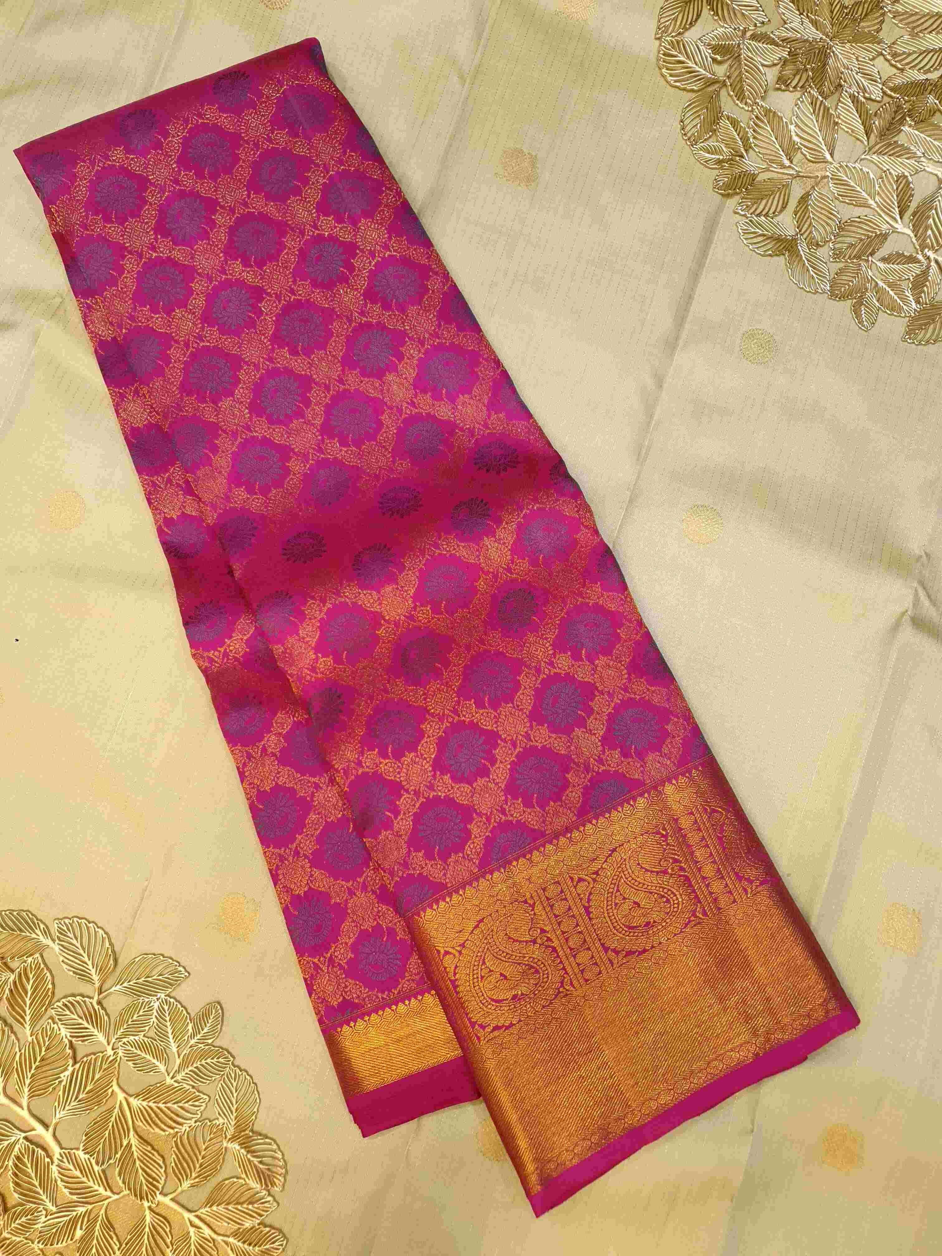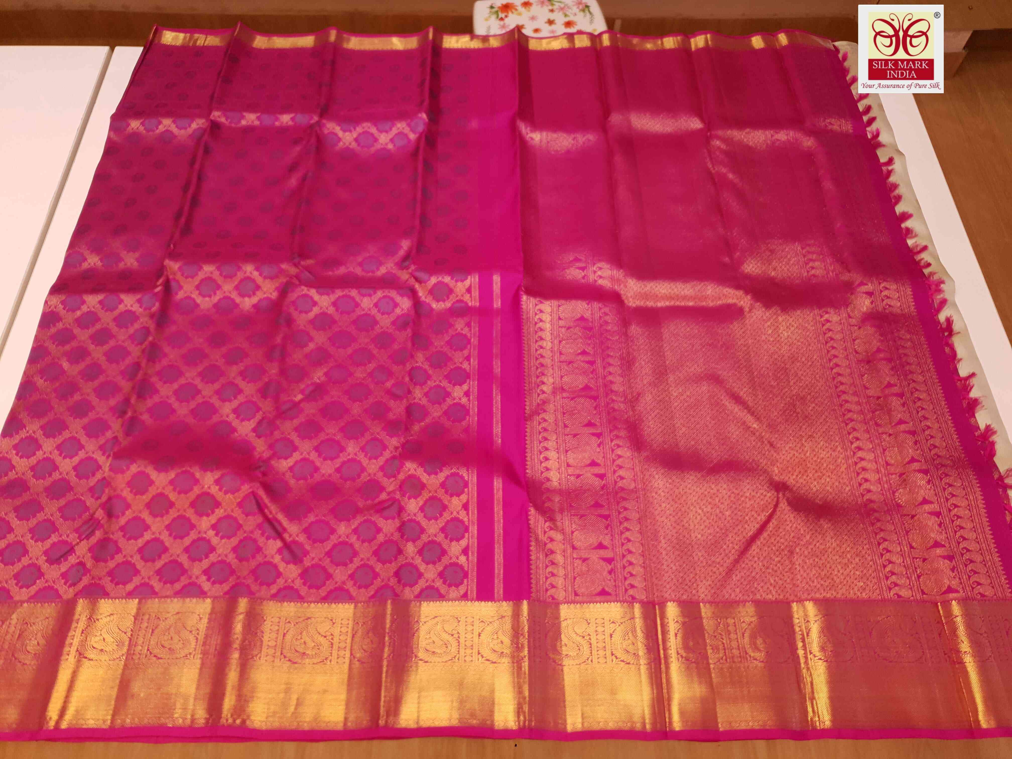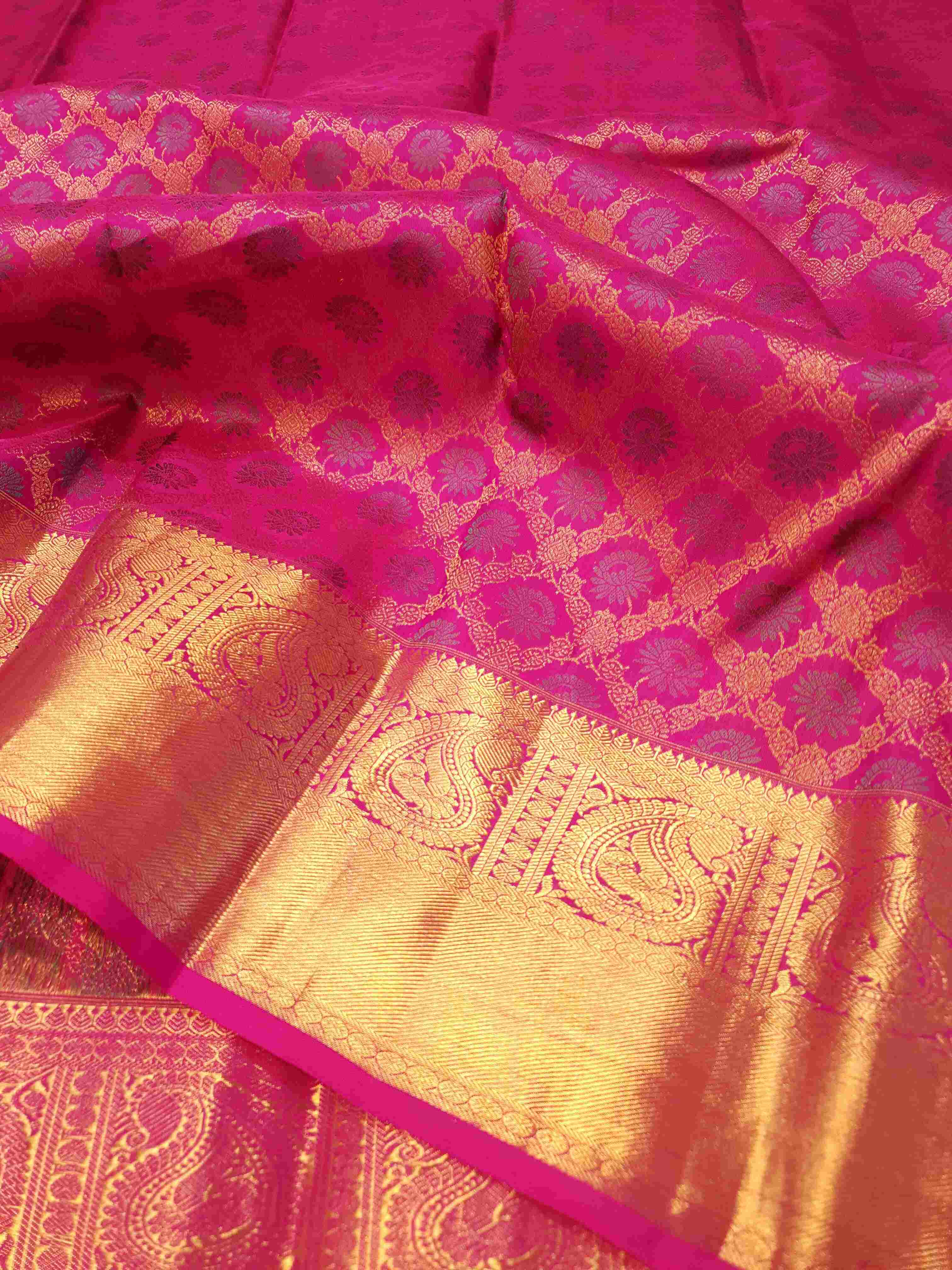 Hot Pink Kanchipuram Handloom 2G Gold Pattu Silk Saree