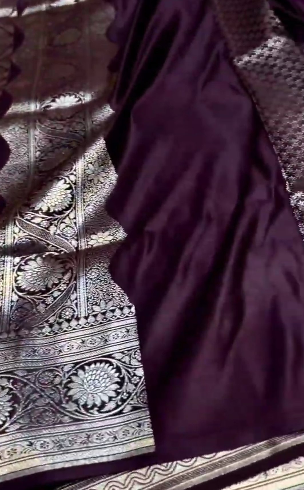 Purple Banarasi Satin Katan Silk Swarovski Jangla Saree