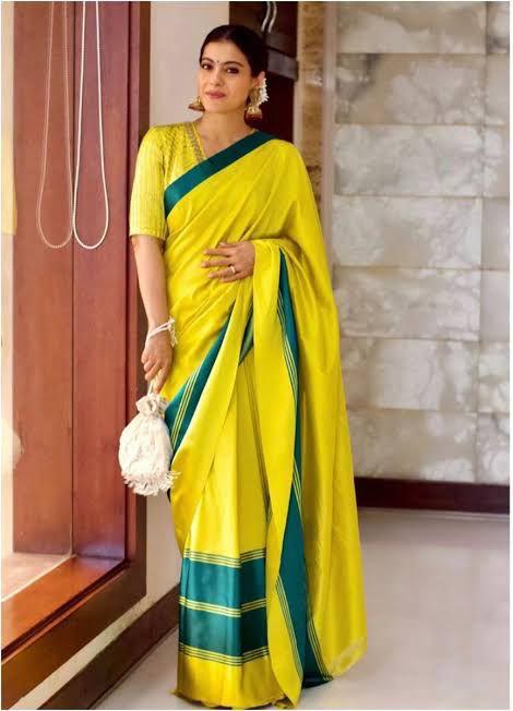 Yellow Chanderi Handloom Pattu Silk Mashru Borders Saree